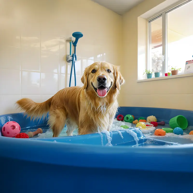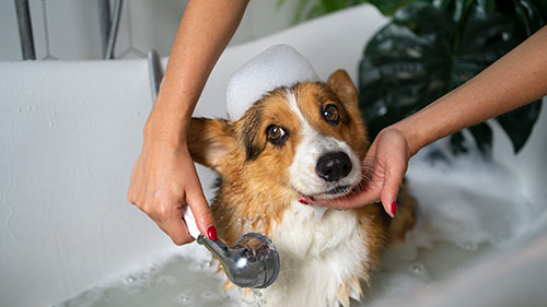 Dog getting a bath