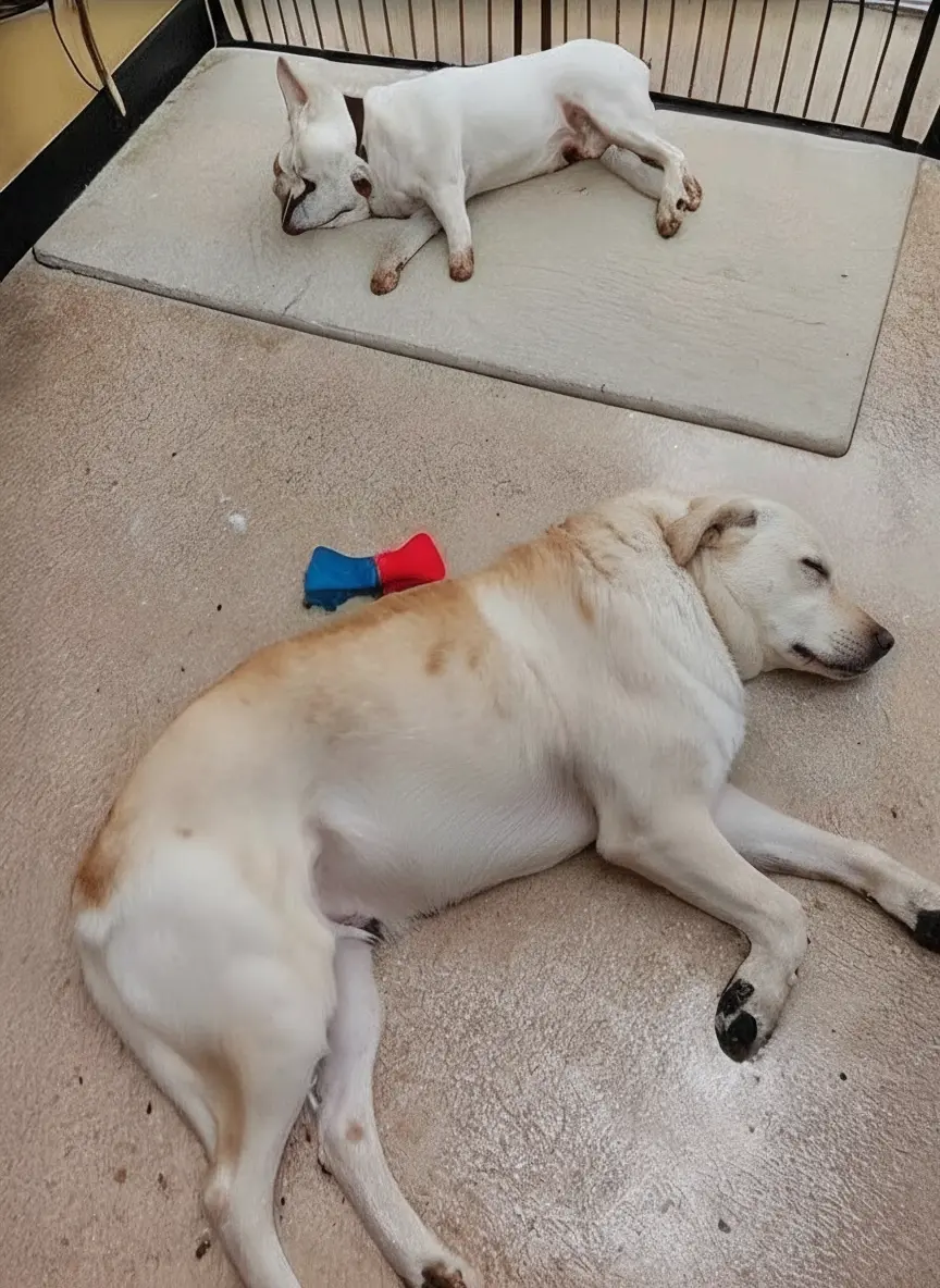 Two dogs relaxing