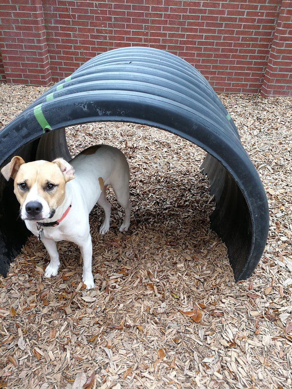 Dogs in play tunnels